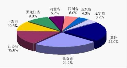 2009年,中国冶金设备对外出口地区主要集中北京、江苏和上海等地,前三个省市出口额之和所占比重达到50%以上,黑龙江省有我国较大的冶金设备企业中国重型机械集团公司,也是该行业出口的主要地区之一。