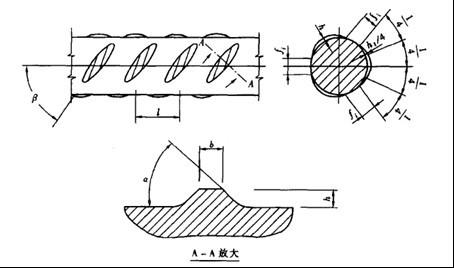 2、横肋 横肋呈月牙形,沿钢筋横截面周圈上匀匀分布。在同一面上横肋倾角保持一致,两面肋钢筋此面和彼面横肋的倾角反向,三面肋钢筋有一面与另两面反向。横肋*线和钢筋纵轴线夹角为40度到60度,横肋两侧面和钢筋表面斜角不得小于45度,并与钢筋表面呈弧形相交。横肋间隙的总和,应不大于公称周长的20%。相对肋面积ƒr,按标准规定的方法计算得出。